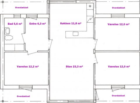 Plantegninger nedenfor viser boligernes standardindretning. Der vil være boliger, som er ændret i forhold til de originale plantegninger. Det kan være 4-rumsboliger, som er ændret til 3-rum med stor stue, eller at køkkenet er lukket ind mod stuen.